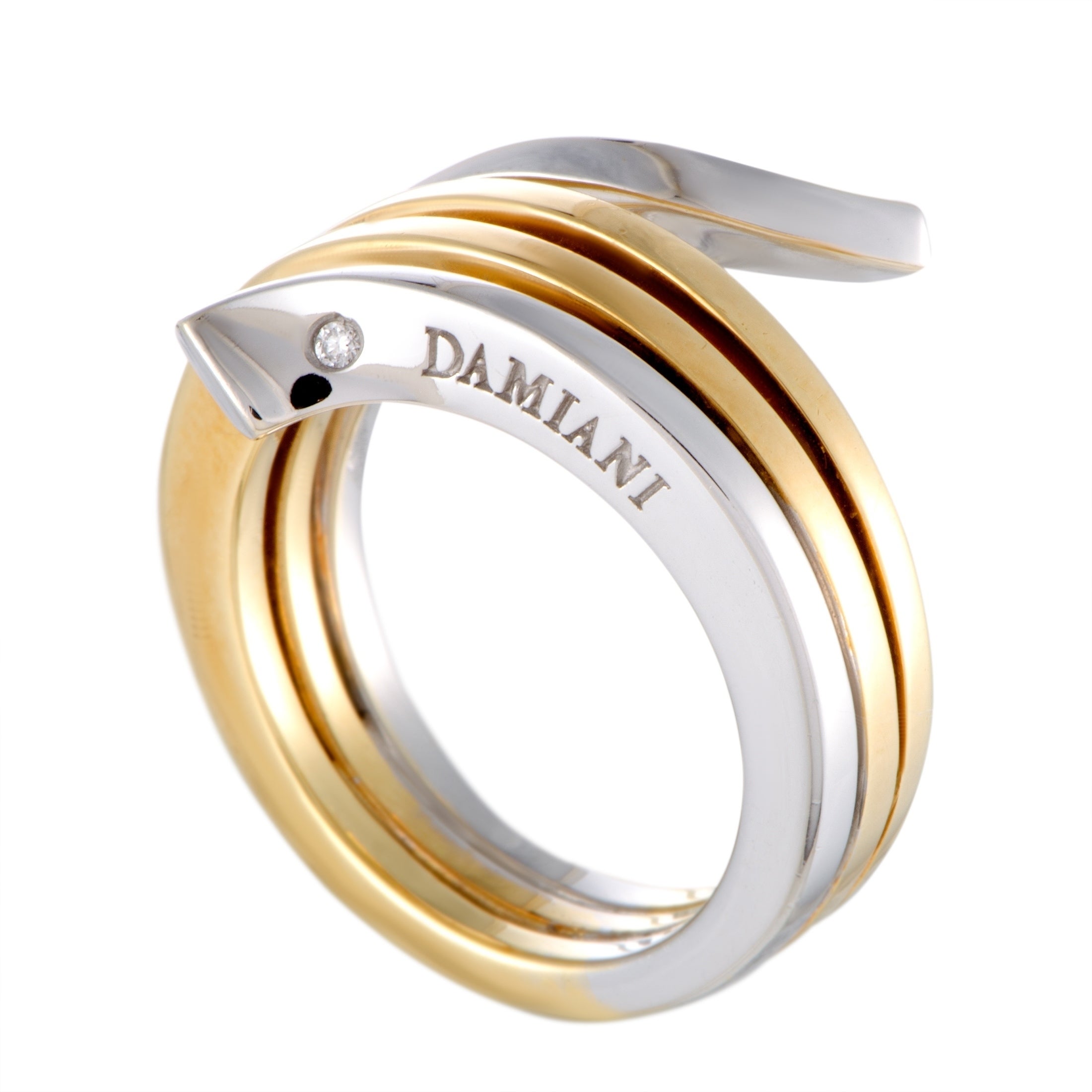 ANELLO SPIRALE IN ORO BIANCO E ORO GIALLO CON DIAMANTE