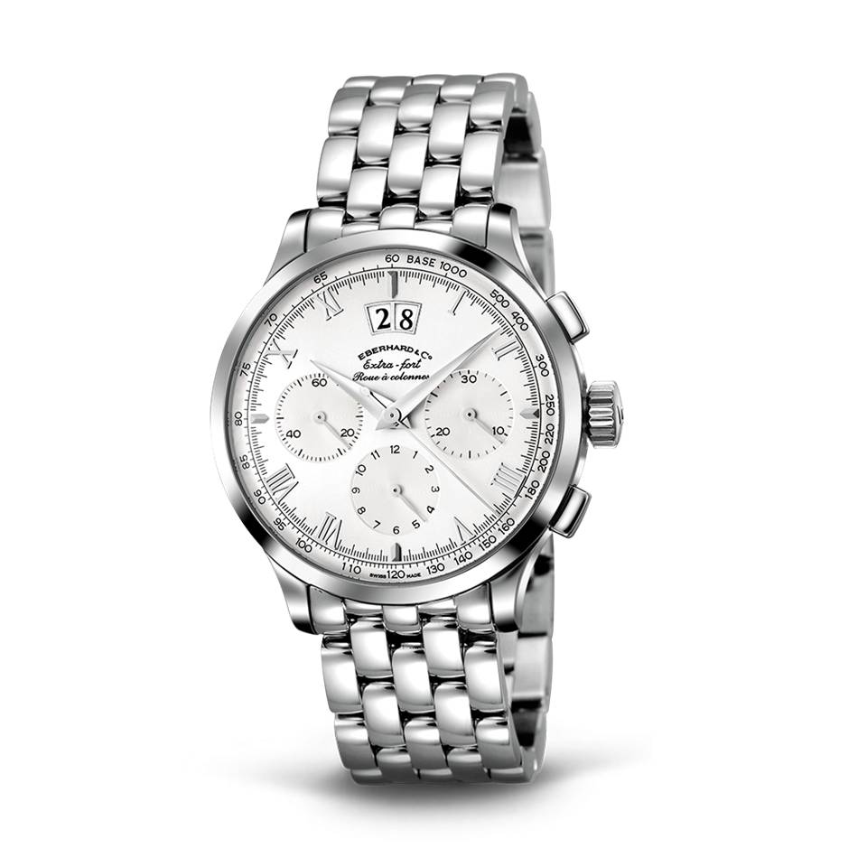CRONOGRAFO MECCANICO AUTOMATICO, VETRO ZAFFIRO BOMBATO ANTIRIFLESSO, CORONA A VITE, FONDO TRASPARENTE IN VETRO ZAFFIRO SERRATO DA 6 VITI, BRACCIALE CHALIN IN ACCIAIO, CHIUSURA DÉPLOYANTE DÉCLIC®