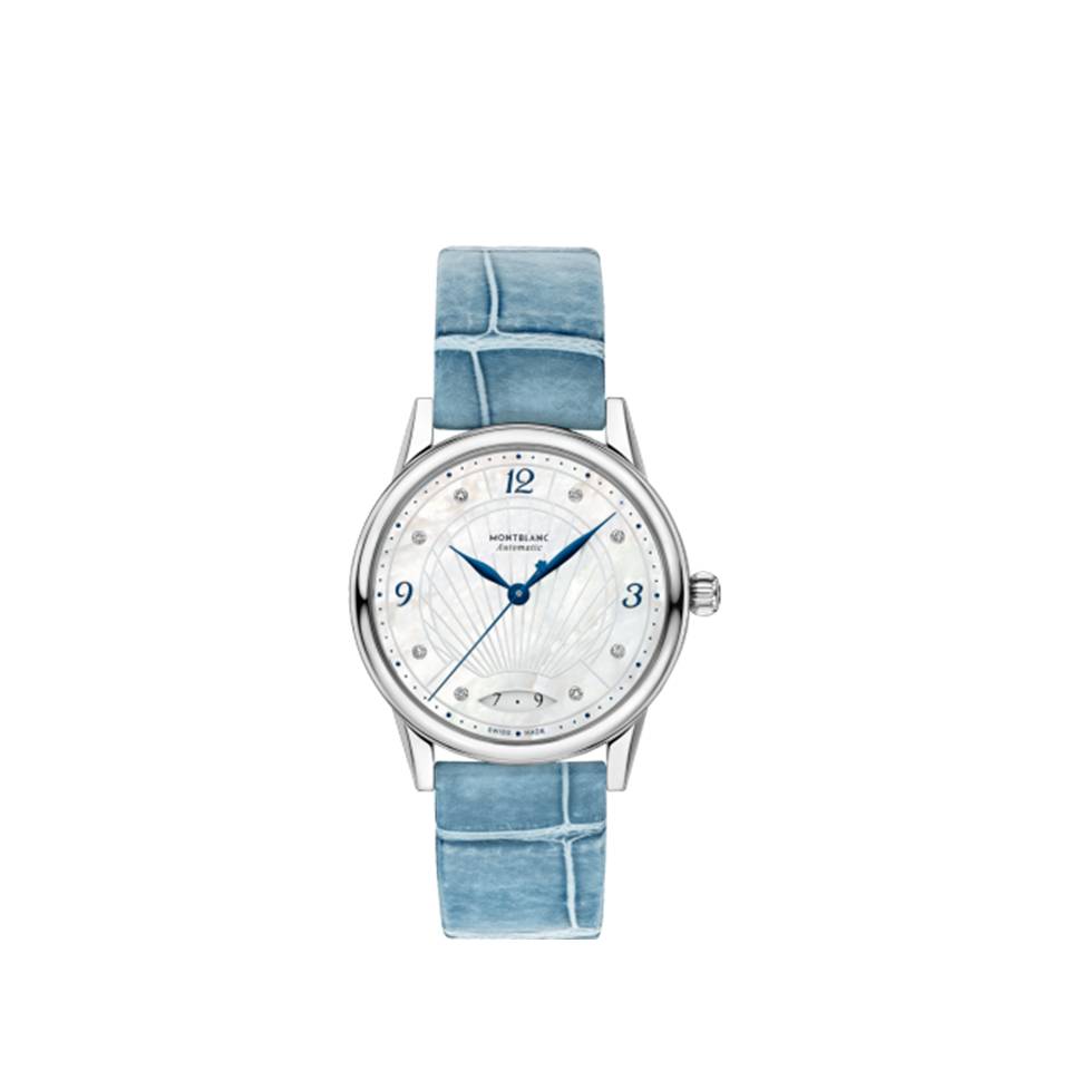 Acciaio, vetro zaffiro, diamanti, madreperla, pelle