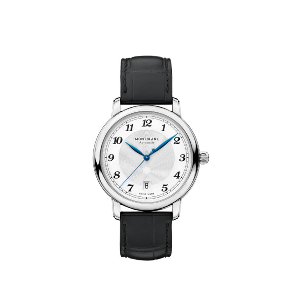 Quest’anno, per festeggiare il 20° anniversario della Montblanc Star Collection, la Maison reinventa la sua collezione iconica con segnatempo ispirati allo straordinario patrimonio della Manifattura Minerva, reinterpretandone l’estetica e la tecnologia. Lo Star Legacy Automatic Date è il segnatempo più puro della collezione ed evidenzia tutti i codici di design della linea, fra cui un quadrante raffinato con iconico motivo guilloché a stella variabile Montblanc, lancette delle ore e dei minuti a foglia finitura oro rosso, numeri arabi stile Breguet rielaborati ispirati agli storici orologi da tasca Minerva, un motivo filet sauté (linee guilloché verticali e orizzontali), un’esclusiva minuteria “chemin de fer” e una lancetta dei secondi con punta a forma di emblema Montblanc. L’orologio è racchiuso in una cassa in acciaio pregiato da 42 mm, è caratterizzato da un quadrante bianco-argenté ed è corredato di un cinturino in alligatore nero realizzato dalla Pelletteria Montblanc di Firenze.