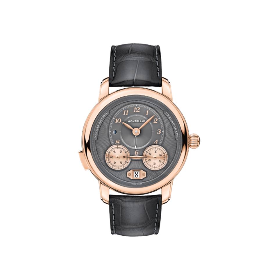 Montblanc reinterpreta il suo Nicolas Rieussec Monopusher Chronograph, lanciato nel 2008 e divenuto un’autentica icona Montblanc. Il Montblanc Star Legacy Chronograph deve il suo nome a Nicolas Rieussec, inventore del primo cronografo a inchiostro nel 1821. Il quadrante del segnatempo è stato rielaborato pur mantenendo intatto il suo look esclusivo. Il disco orario decentrato e i dischi girevoli in titanio del cronografo sono bombati, per un effetto tridimensionale. Ispirato agli orologi da tasca Minerva, il Montblanc Star Legacy Nicolas Rieussec Chronograph presenta una cassa rotonda di 44,8 mm dal design rielaborato, con finitura incurvata sui lati, e anse con elementi rialzati sui lati. Il segnatempo è animato dall’iconico movimento cronografo monopulsante di manifattura a carica automatica. Il Calibro MB R200 è dotato di un meccanismo con ruota a colonne che controlla il cronografo monopulsante. Il segnatempo è dotato di due dischi girevoli allineati orizzontalmente corrispondenti ai contatori dei 60 secondi e dei 30 minuti del cronografo monopulsante, che ruotano al di sotto di un doppio indice fisso azzurrato, come nel dispositivo originale del 1821. Inoltre, una lancetta scheletrata sul quadrante decentrato indica un secondo fuso orario.