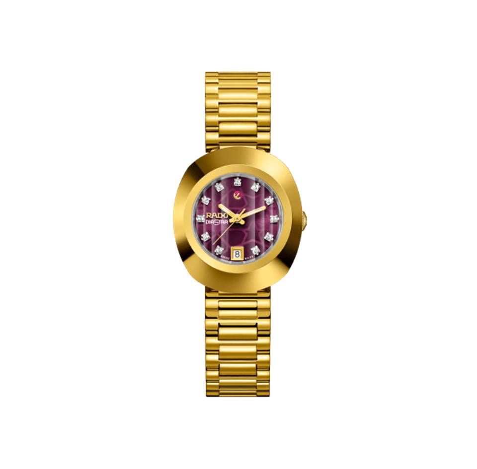 Vetro zaffiro, hardmetal, acciaio inox trattato con PVD giallo oro, diamanti