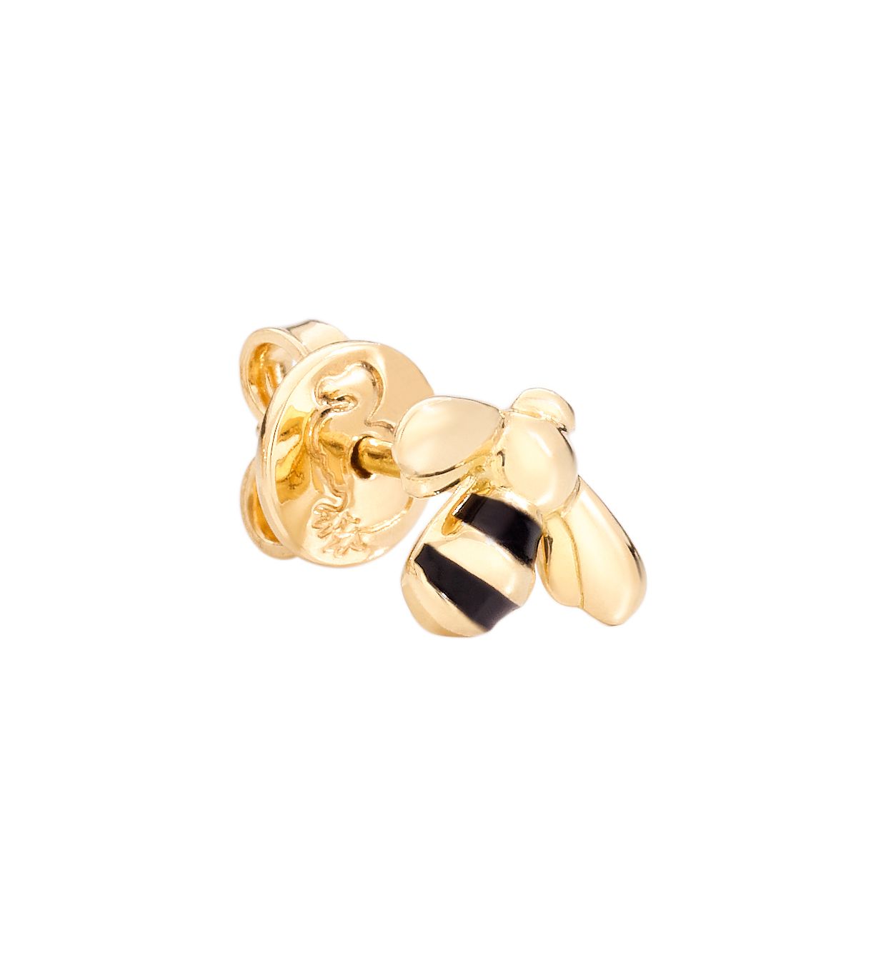 Orecchino singolo ape in oro giallo 18 kt e smalto nero.