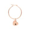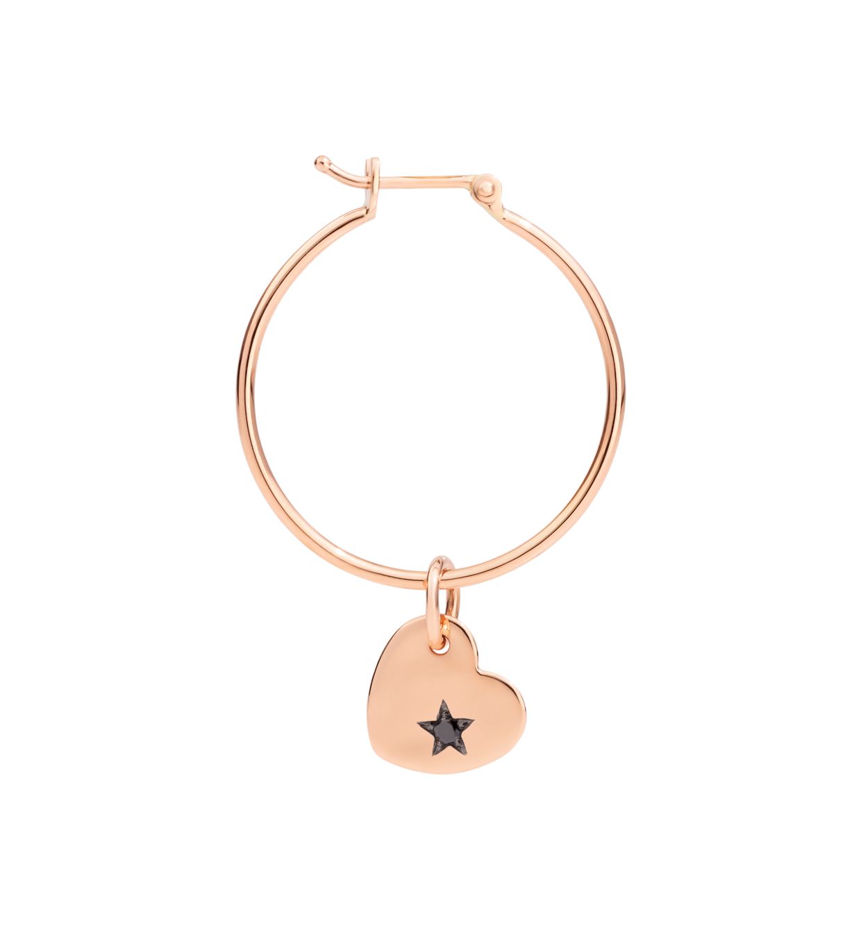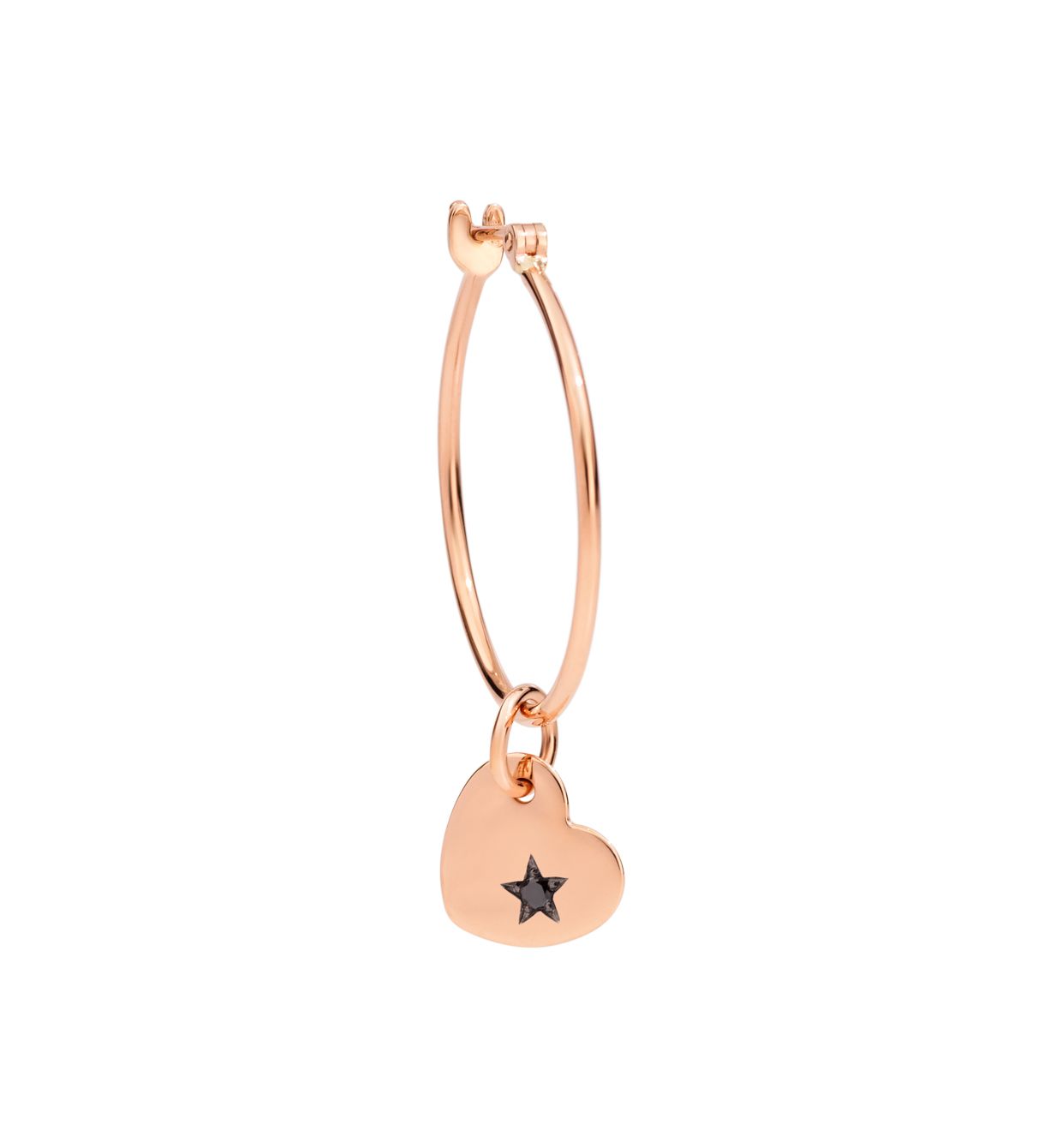 Orecchino a cerchio piccolo in oro rosa 9 kt, ciondolo cuore in oro rosa 9 kt e diamante black treated.