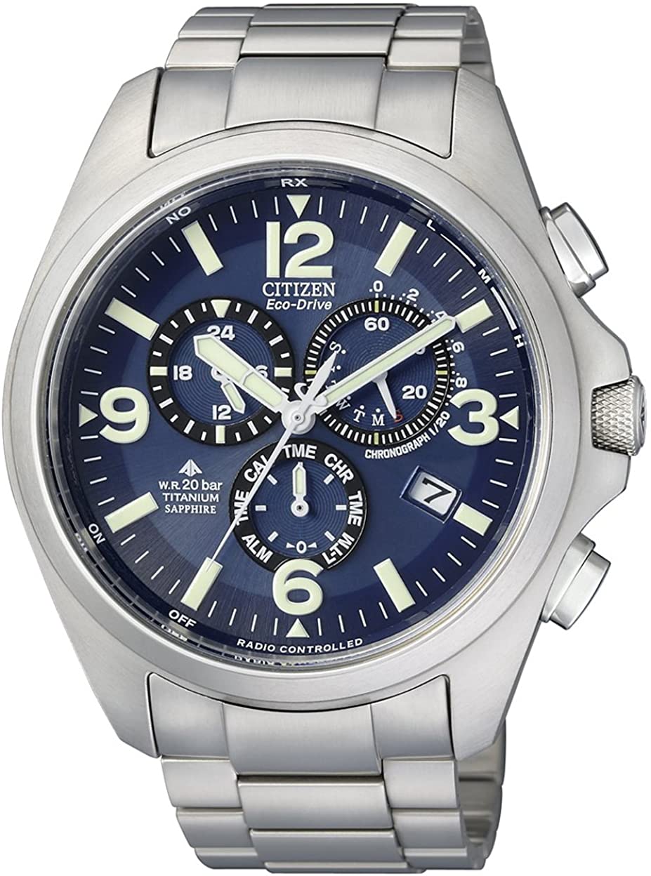Radiocontrollato con cronometro, dual time, allarme, calendario perpetuo. Ricezione segnale orario automatica e manuale, con conferma acustica esito ricezione. Funzione di risparmio energetico.