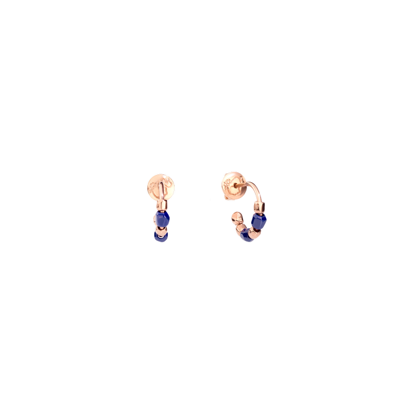 orecchinI CERCHIO aperti in ORO ROSA 9K CON MINI GRANELLI IN ORO ROSA 9K E CERAMICA blu- MODELLO PICCOLO