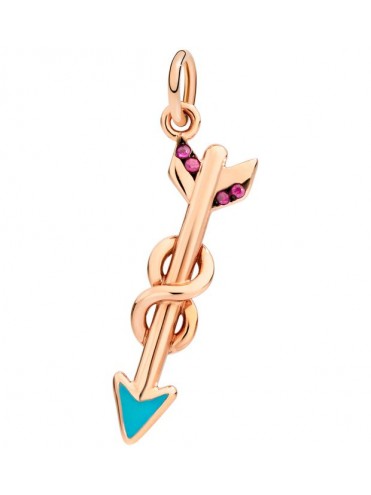 Ciondolo freccia in oro rosa, rubini e smalto turchese