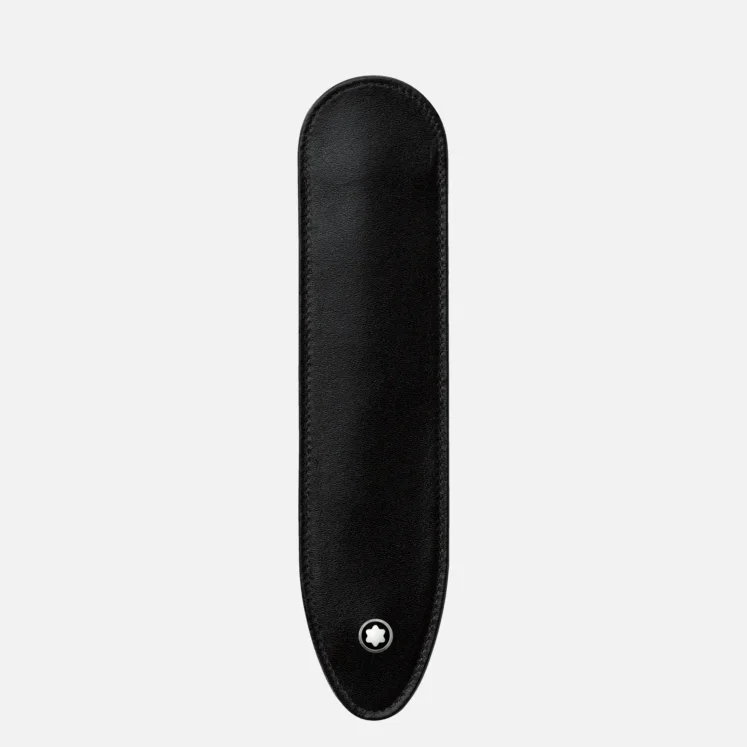 Astuccio porta penna in pelle di bovino fiore di provenienza europea con esclusivo effetto lucido Montblanc, concia al cromo, tintura passante, fodera jacquard con logo Montblanc inciso